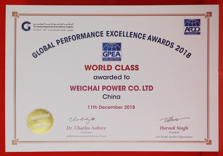 日前,第24屆亞太質量組織國際大會在阿聯酋首都阿布扎比舉行。會上,譚旭光榮膺“2018亞太質量獎個人獎—卓越誠信企業領袖”,濰柴動力榮獲“2018全球卓越績效獎——世界級”。