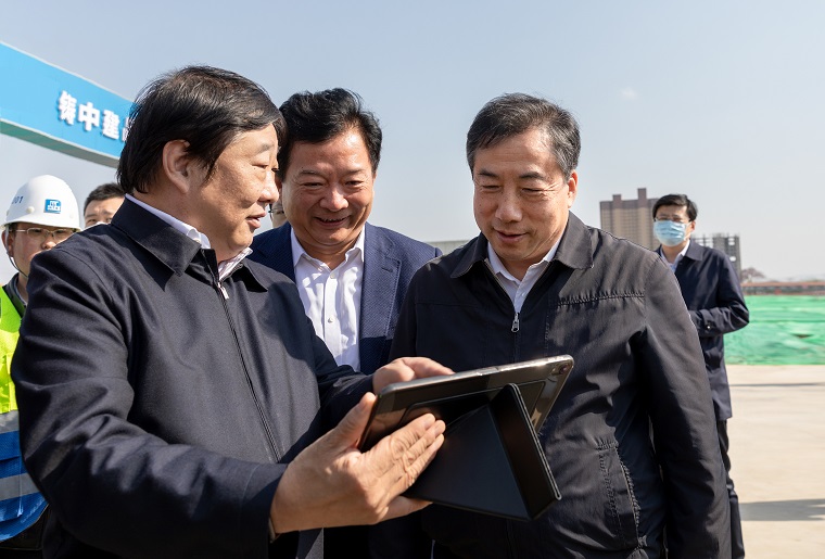 4月16日下午,省委常委、濟南市委書記孫立成到山東重工(濟南萊蕪)綠色智造產業城項目調研,強調要充分認識項目建設的重要意義,切實增強責任感和緊迫感,在確保項目建設質量和生產安全的前提下,加強調度,攻堅克難,全力以赴加快項目建設進度,確保早日投產達效。